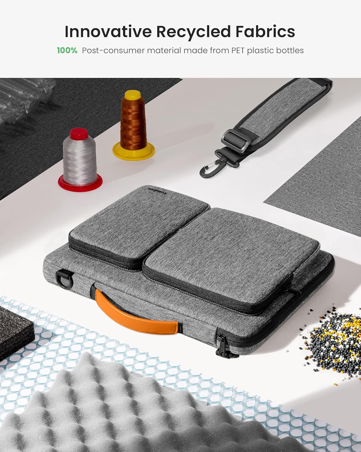 100% Post-consumer material made from PET plastic bottles. Eco-friendly recycled fabrics enable us to give complete protection to your computer while also protecting our environment.