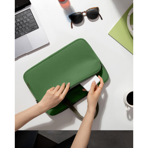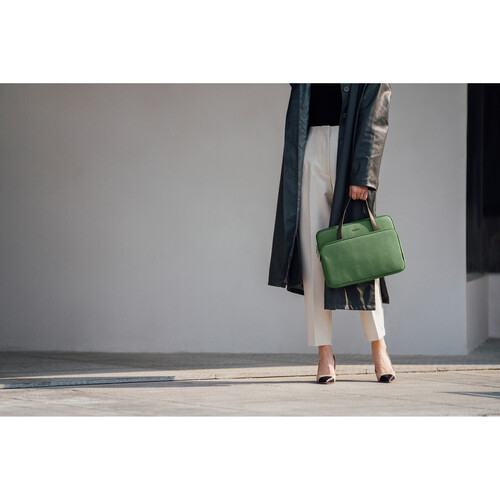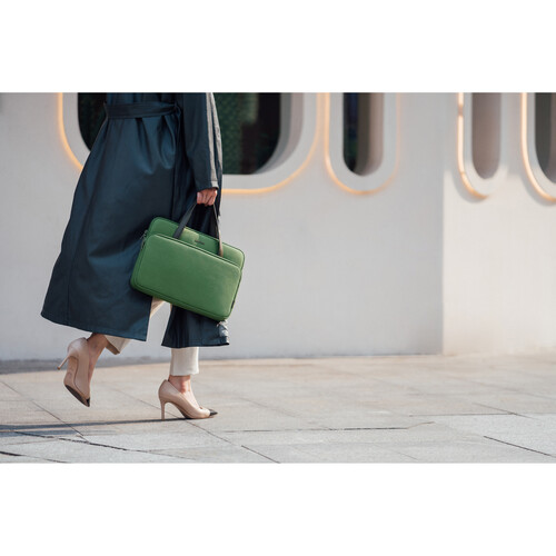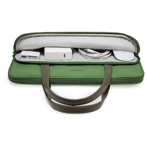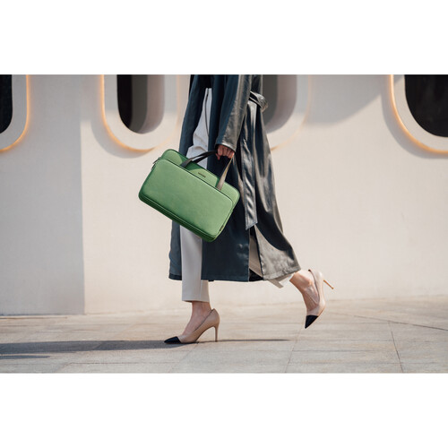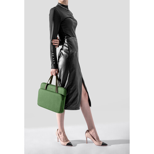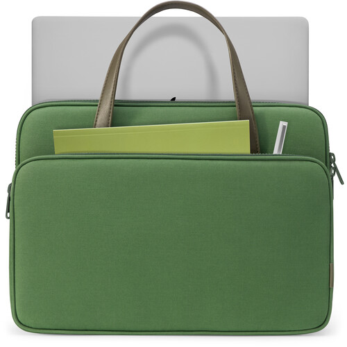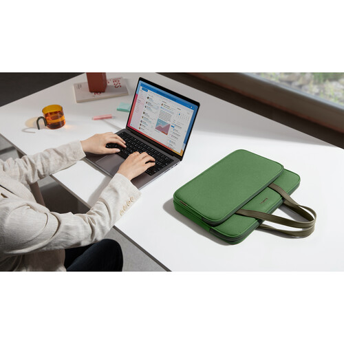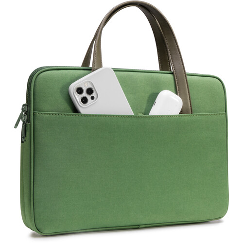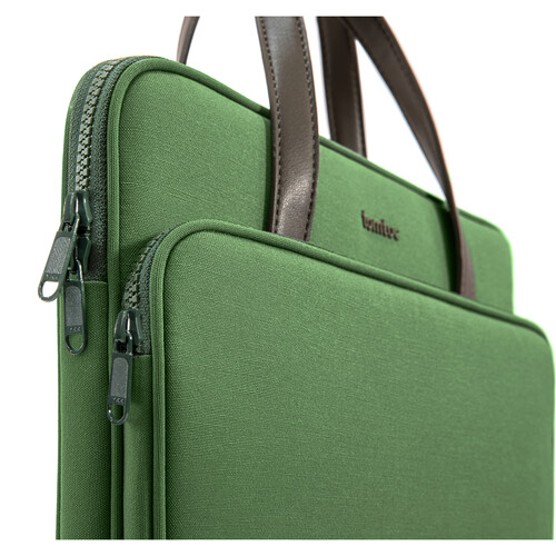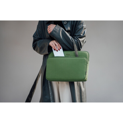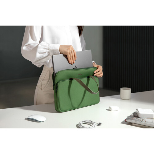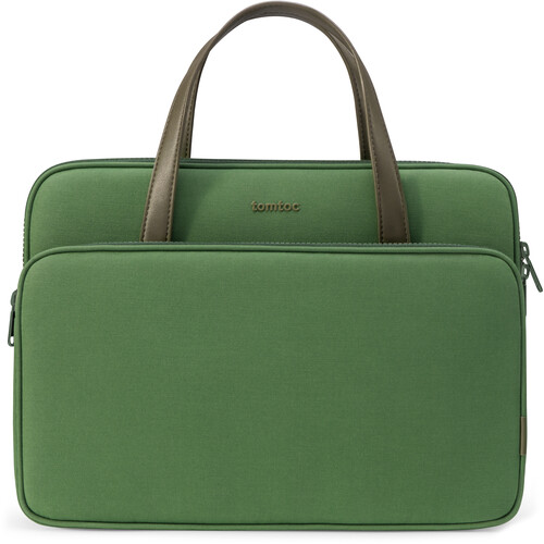 Combining functionality and style, the khaki tomtoc Versatile-A11 Laptop Handbag protects your 14" laptop and accessories with a modern and unique motif. The main compartment accommodates a 14" Apple MacBook Pro while additional accessory pockets store your cables, power supply, and more. A hidden quick-access pocket uses magnets for easy closure while remaining discreet. The YKK zippers keep your items secure during travel while also offering smooth-gliding open and closure. PU leather handles provide a comfortable and secure grip. CornerArmor technology adds reinforced protection at the corners to prevent damage from affecting your device in the event of a fall or drop.
